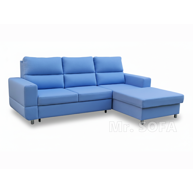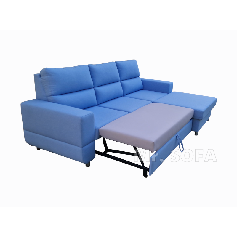 Posiada funkcję spania. Rozkłada się ona na automacie typu delfin. W bocznej części ukryliśmy duży pojemnik na pościel.